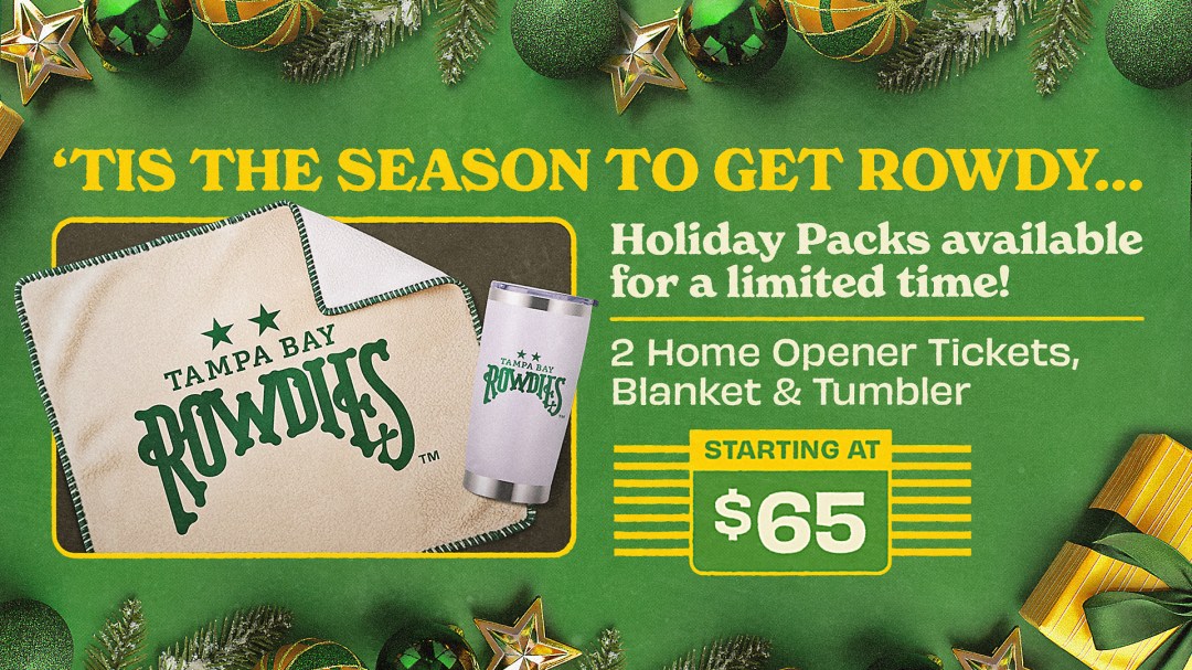 Looking for the perfect gift this holiday season? The Rowdies Holiday Pack has you covered! For as low as $65, you’ll receive 2 Tickets to our 2026 Home Opener, a cozy Rowdies Blanket, and a 20-ounce Tumbler.